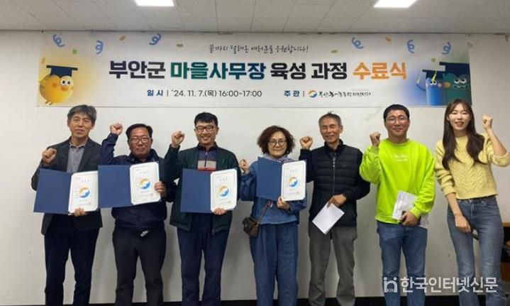 한국현대미술신문 강경숙 기자 | 마을공동체에 관심이 있는 주민을 대상으로 마을사업에 필요한 교육을 지원, 주민들의 자립적 마을 활성화를 위한 마을사무장 육성 과정 수료식이 지난 7일 부안군 농어촌종합지원센터에서 열렸다.