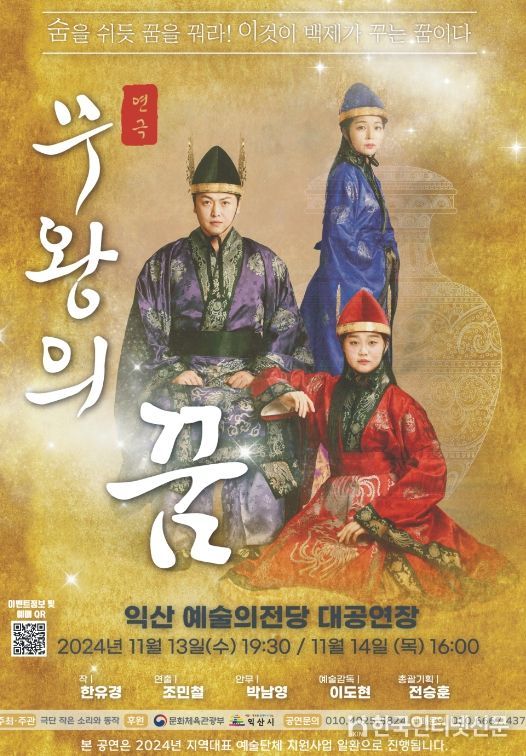 한국현대미술신문 강경숙 기자 | 익산예술의전당 대공연장에서 극단 '작은소리와 동작'의 창작극 '무왕의 꿈'이 펼쳐진다.