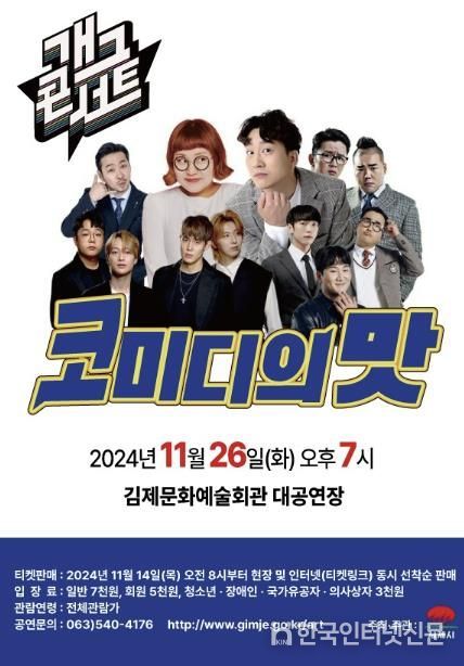 한국현대미술신문 강경숙 기자 | 김제문화예술회관은 KBS 희극인들과 펼쳐지는 포복절도 개그쇼! '개그콘서트 코미디의 맛'이 오는 26일 오후 7시 대공연장에서 펼쳐진다고 밝혔다.