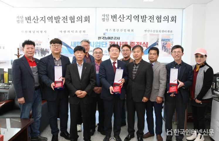 한국현대미술신문 강경숙 기자 | 전북 부안에 소재한 사단법인 변산지역발전협의회는 지난 12일 한국농어촌공사 새만금사업단 직원들에게 감사패를 전달했다.