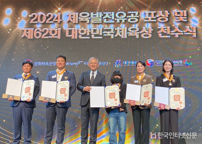 한국현대미술신문 강경숙 기자 | 지난 12일 서울 더플라자 호텔 그랜드 볼룸홀에서 진행된 '2024 체육발전유공 및 제62회 대한민국체육상 정부포상 전수식(주최·주관 문화체육관광부, 국민체육진흥공단, 대한체육회, 대한장애인체육회)'에서 진안군 전민재 선수가 맹호장을 수상하는 영광을 안았다.