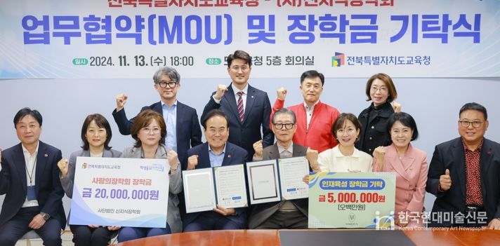한국현대미술신문 강경숙 기자 | 전북특별자치도교육청과 (사)신지식장학회가 창의인재 발굴 및 장학사업 발전을 위해 손을 맞잡았다.