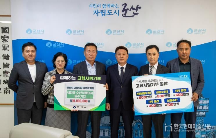 한국현대미술신문 강경숙 기자 | 군산시 새만금 수산식품 수출가공 종합단지 입주 예정 기업들이 15일 군산시청을 방문해 고향사랑기부에 동참하며 총 1,900만 원을 전달하여 지역사회에 귀감이 되고 있다.