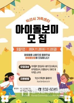 한국현대미술신문 강경숙 기자 | 익산시가 안정적인 아이돌봄서비스 제공을 위해 아이돌보미를 모집한다.