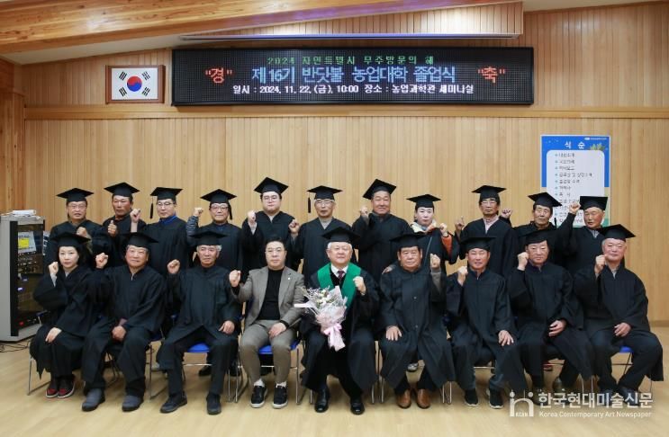 한국현대미술신문 강경숙 기자 | 무주군 제16기 반딧불농업대학 졸업식이 지난 22일 무주농업과학관 2층 세미나실에서 개최됐다.