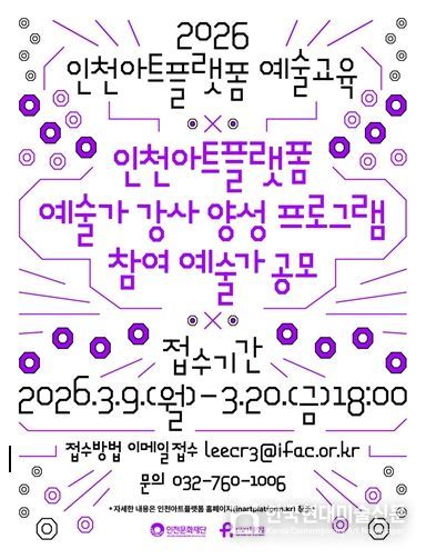 한국현대미술신문 박재남 기자 | (재)인천문화재단에서 운영하는 인천아트플랫폼은 예술가의 창작 역량을 기반으로 예술교육 전문 인력을 양성하기 위해 2026년부터 〈예술가 강사 양성 프로그램〉을 새롭게 운영한다.