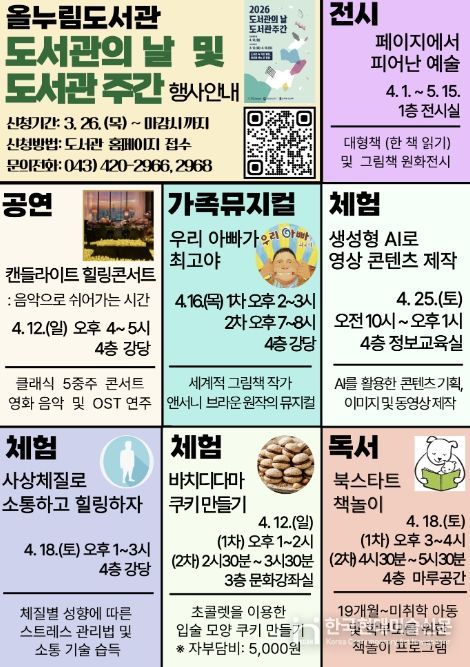 한국현대미술신문 신정은 기자 | 단양군이 ‘2026 도서관의 날·도서관 주간’을 맞아 다채로운 독서문화 행사를 운영한다.