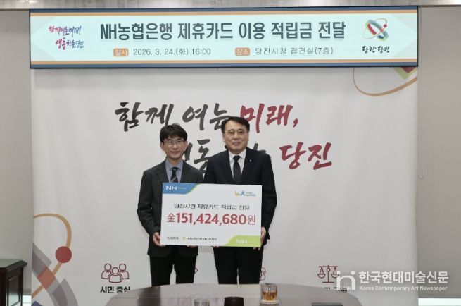 한국현대미술신문 신정은 기자 | 당진시는 지난 24일 당진시청 접견실에서 시 금고인 NH농협은행(주) 당진시지부로부터 제휴카드 이용 적립금 151,424,680원을 전달받았다고 25일 밝혔다.