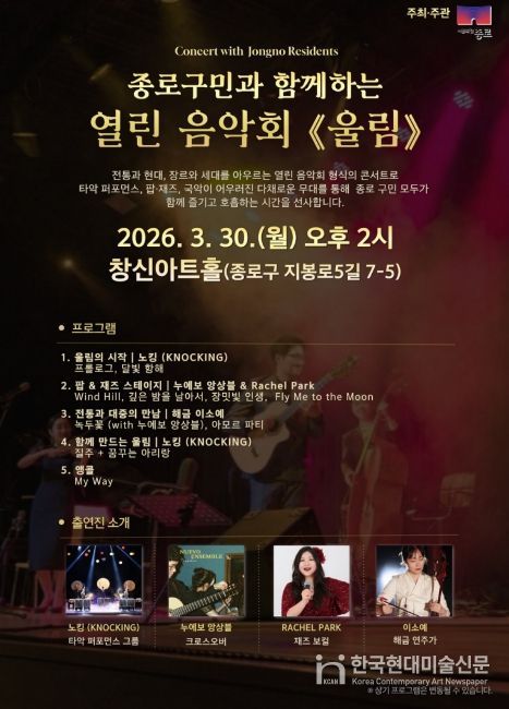 한국현대미술신문 배건 기자 | 종로구가 봄을 맞아 도심 곳곳을 문화의 온기로 채울 무료 음악 공연을 선보인다.