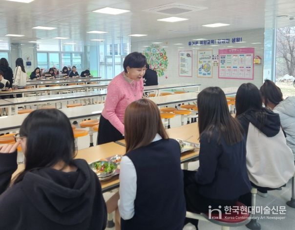 한국현대미술신문 신정은 기자 | 충청북도옥천교육지원청 박정애 교육장은 3월 25일 옥천여자중학교를 방문하여 신학기 학교급식 운영 상황을 점검하고, 식중독 예방을 위한 현장 대응 실태를 살폈다.