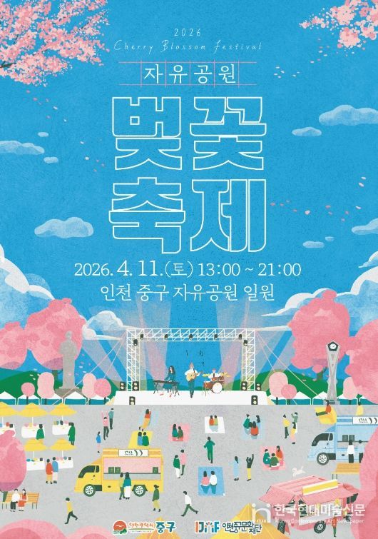 한국현대미술신문 박재남 기자 | (재)인천중구문화재단은 새봄을 맞이해 오는 4월 11일 인천의 대표적인 벚꽃 명소인 자유공원 일대에서 ‘2026년 자유공원 벚꽃축제’를 개최한다고 밝혔다.