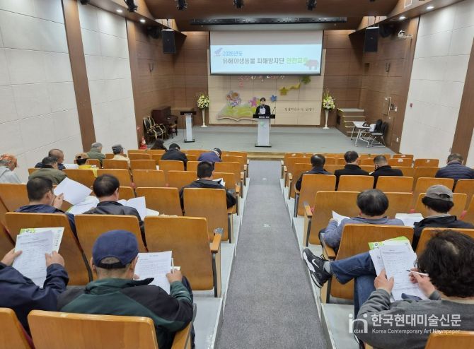 한국현대미술신문 신정은 기자 | 단양군은 단양경찰서와 협업해 지난 1일 단양군 평생학습센터에서 ‘2026년 유해야생동물 피해방지단 안전교육’을 실시했다.