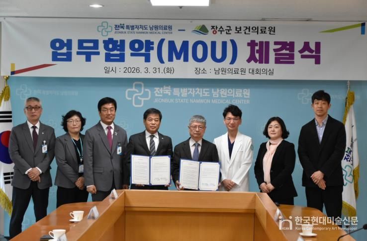 한국현대미술신문 기자 | 장수군 보건의료원은 지난 31일 남원의료원과 의료취약지역 응급환자의 신속하고 안전한 직접 이송·치료 연계 및 장수지역 공공보건의료 협력 강화를 위한 업무협약을 체결했다고 밝혔다.
