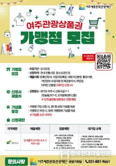 한국현대미술신문 배윤섭 기자 | 여주시는 관광객 유입 증가에 따른 지역 내 소비 활성화를 위해 추진 중인 ‘여주관광상품권’ 가맹점을 확대하고자 읍․면․동 현장 접수를 본격 실시한다고 밝혔다.