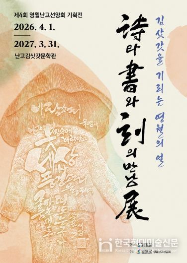 ‘詩와 書와 刻의 만남 展’은 2026년 4월 1일부터 2027년 3월 31일까지 난고김삿갓문학관 1층 다목적실과 2층 기획전시실에서 열리며, 매주 월요일은 휴관이다.