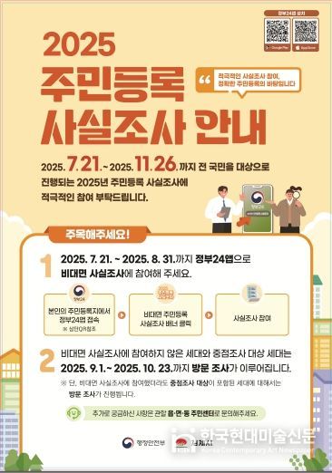 한국현대미술신문 기자 | 김제시는 21일부터 오는 11월 26일까지 전 시민을 대상으로 2025년 주민등록 사실조사를 실시한다고 밝혔다.