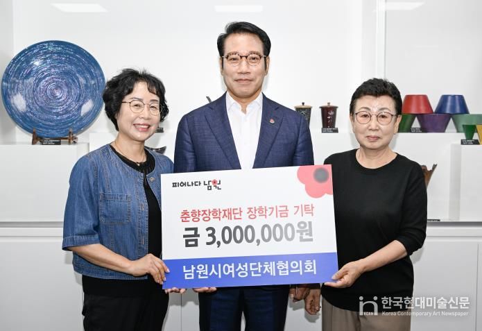 한국현대미술신문 기자 | 지난 24일 남원시 여성단체협의회는 (재)춘향장학재단에 장학금 300만원을 기탁하며 지역 인재 교육 지원에 뜻을 모았다.
