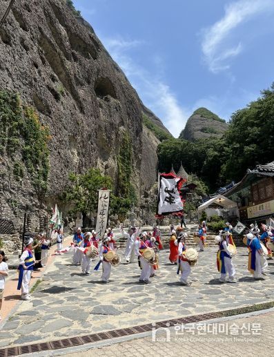 한국현대미술신문 기자 | 진안농악을 대표하는 진안중평굿보존회가 마이산 등을 부대로 전통과 창작이 어우러진 거리극 공연 ‘마이산 놀이길 산울림’을 펼치며 관광객과 주민들의 발길을 사로 잡고 있다.