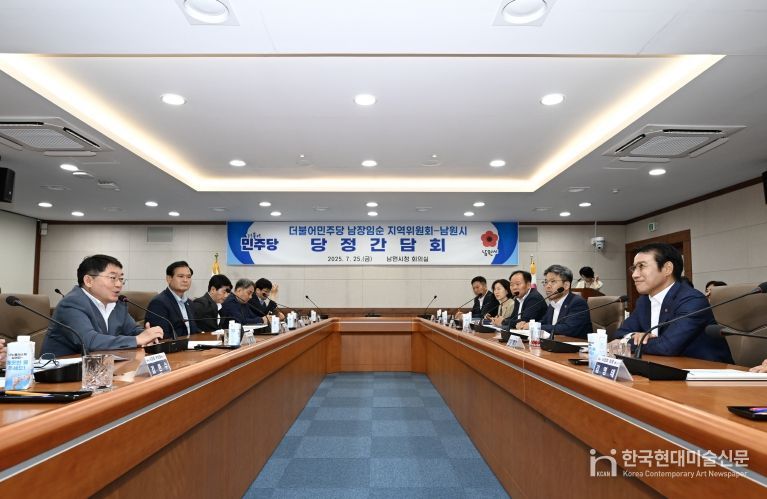 한국현대미술신문 기자 | 남원시는 25일 시청 회의실에서 더불어민주당 남장임순 지역위원회와 대선공약사업, 2026년도 국가예산 확보 및 주요 공모사업 등 정책현안 논의를 위한 당정간담회를 개최했다.