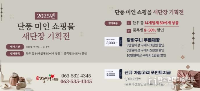 시는 지역 대표 농특산물 쇼핑몰인 단풍미인쇼핑몰의 전면 개편을 기념해 28일부터 8월 17일까지 26일간 ‘단풍미인쇼핑몰 새단장 기획전’을 운영한다고 밝혔다.