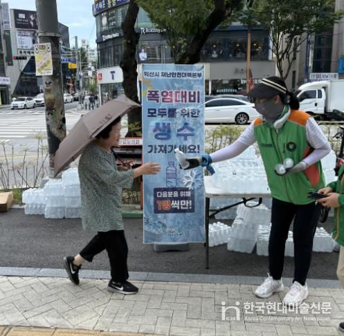 익산시는 29일 자율방재단과 함께 영등동에서 생수 나눔 행사를 진행하고, 무더위에 지친 시민들에게 시원한 생수 3,000병을 제공했다.