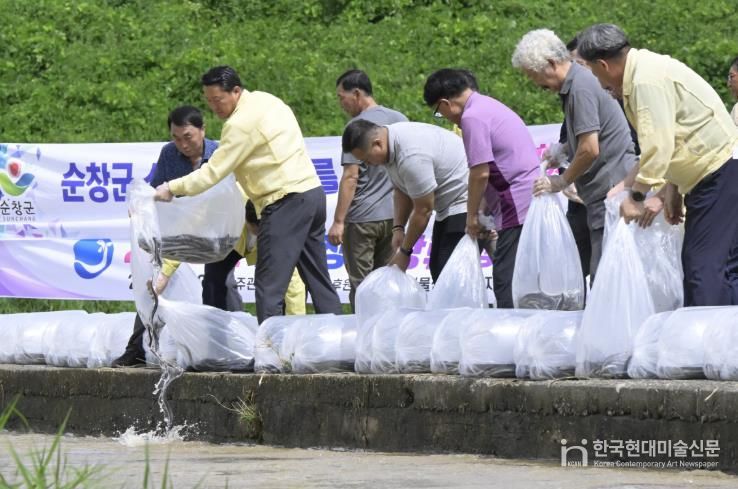 한국현대미술신문 기자 | 순창군 섬진강 일대에서 지역 생태복원을 위한 뱀장어 방류행사가 열렸다.