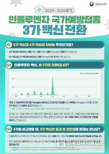 한국현대미술신문 기자 | 익산시는 겨울철 호흡기 감염병 예방을 위해 건강 취약계층을 대상으로 2025-2026절기 인플루엔자(독감) 및 코로나19 무료 예방접종을 실시한다고 3일 밝혔다.