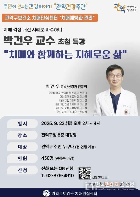 이러한 성과를 바탕으로, 구는 오는 9월 22일(월) 오후 2시, 구청 8층 대강당에서 치매극복주간을 맞아 주민건강특강을 개최한다.