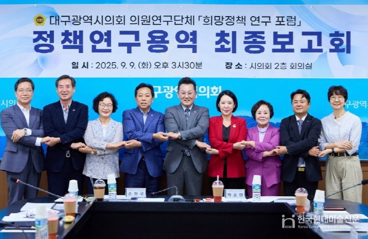 한국현대미술신문 정소영 기자 | 대구시의회 의원연구단체인 ‘희망정책 연구 포럼’(대표 손한국 의원)은 9월 9일, 오후 3시 30분 시의회 2층 회의실에서 연구단체 소속 의원과 연구진 등이 참석한 가운데 박소영 의원(동구2)의 제안으로 추진한 '주거지역 인근의 상가밀집지역 주차문제 해소방안 연구'의 최종 보고회를 개최했다.
