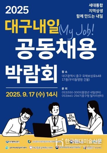 한국현대미술신문 정소영 기자 | 대구 중구는 오는 9월 17일 오후 2시부터 4시까지 우리들병원 17층(국채보상로 648)에서 ‘2025 대구 내일(My Job) 공동채용박람회’를 개최한다.