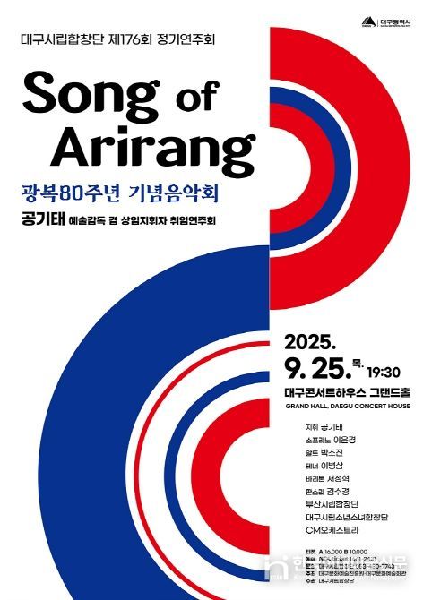 대구시립합창단이 광복 80주년을 기념하여 민족의 서사이자 정서적 상징인 ‘아리랑’을 중심으로 구성된 대형 칸타타 ‘Song of Arirang’(송 오브 아리랑)를 무대에 올린다.
