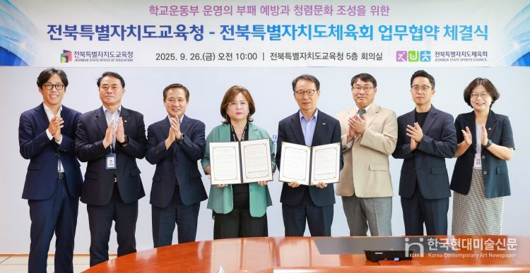한국현대미술신문 기자 | 전북특별자치도교육청과 전북특별자치도체육회가 공정하고 투명한 학교 운동부 환경 조성을 위해 손을 맞잡았다.