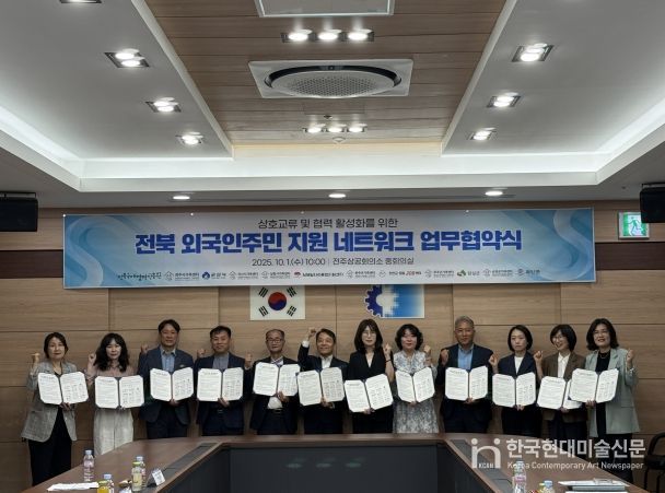 한국현대미술신문 기자 | 전북국제협력진흥원은 오늘인 10월 1일, 전주상공회의소 중회의실에서 도내 외국인지원센터 운영기관들과 함께 '전북 외국인주민 지원 네트워크 협약'을 체결했다고 밝혔다.