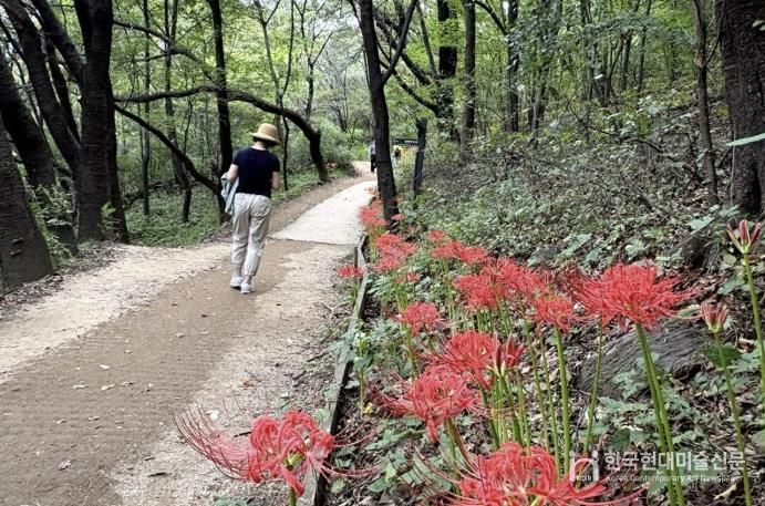 한국현대미술신문 배건 기자 | 서대문구는 관내 안산(鞍山) 자락길에 가을의 전령사인 꽃무릇이 활짝 피어 등산객들의 눈길을 사로잡고 있다고 2일 밝혔다.