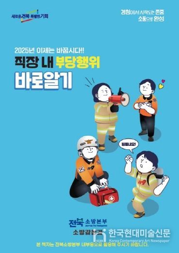 한국현대미술신문 기자 | 전북특별자치도소방본부는 직장 내 부당행위를 예방하고, 구성원 간 소통과 이해가 공존하는 건강한 직장문화를 만들기 위해 ‘소통 길잡이! 직장 내 부당행위 바로 알기’ 책자를 제작해 배포했다고 2일 밝혔다.