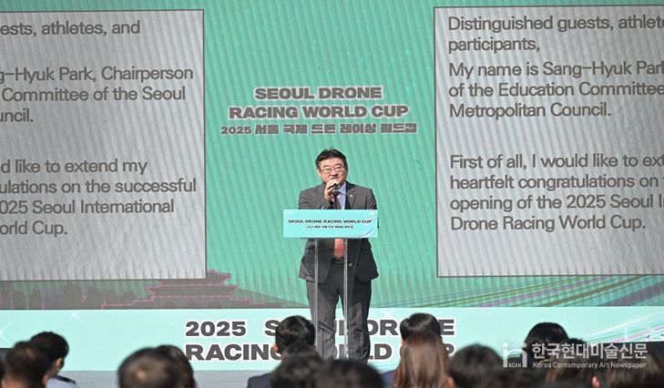 한국현대미술신문 배윤섭 기자 | 서울특별시의회 박상혁 교육위원장(서초 제1선거구, 국민의힘)은 10월 1일 광나루 한강드론공원에서 열린 '2025 서울 국제 드론 레이싱 월드컵'개회식에 참석하여 대회 개회를 축하하고, 참가 선수단과 관계자들을 격려했다.
