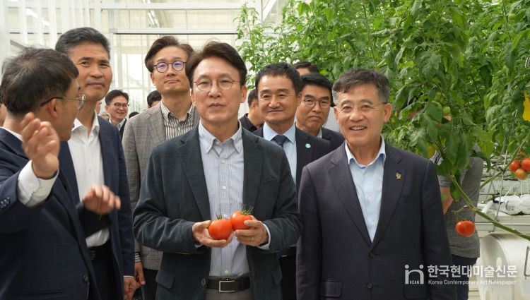 한국현대미술신문 기자 | 김민석 국무총리가 추석 연휴 기간인 8일 스마트농업 시설 운영 실태와 안전관리 체계를 점검하기 위해 김제 백구 스마트팜 혁신밸리를 방문했다.