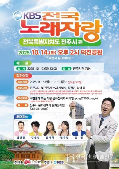 전주시 관계자는 “전국노래자랑은 대한민국을 대표하는 국민 참여형 프로그램으로, 시민 누구나 주인공이 될 수 있는 무대”라며 “가을 정취가 물씬 풍기는 덕진공원에서 열리는 이번 녹화에 많은 시민들이 함께해 주시길 바란다”고 말했다.