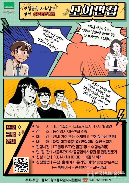 한국현대미술신문 배건 기자 | 동작구는 2026학년도 대입 수험생을 대상으로 ‘입학사정관과 함께하는 모의 면접’을 개최한다고 밝혔다.