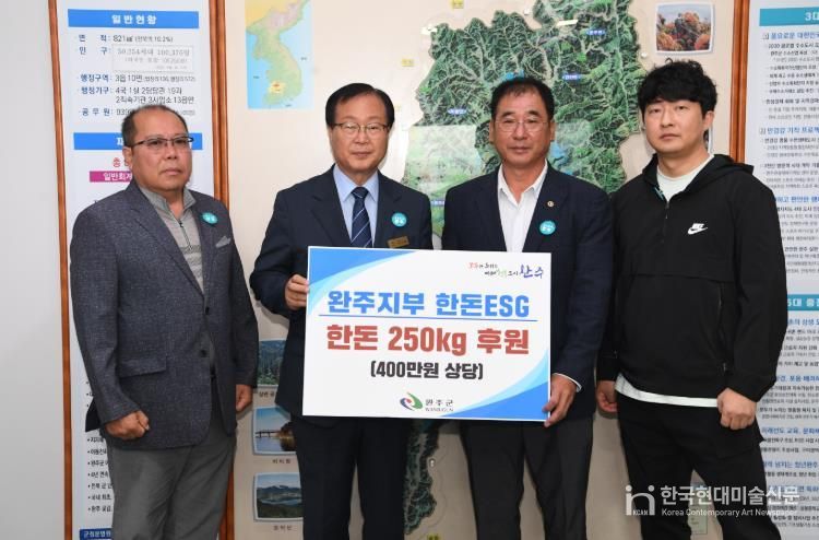 한국현대미술신문 기자 | (사)대한한돈협회 완주지부가 완주군에 400만 원 상당의 돼지고기 전지 250kg를 전달했다.