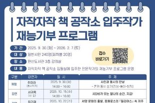 박남미 전주시 도서관평생학습본부장은 “이번 프로그램은 전문작가들이 시민과 직접 만나 지식과 경험을 나누는 뜻깊은 자리”라며 “많은 시민이 참여해 글 쓰는 창작의 기쁨을 함께 나누길 바란다”고 말했다.
