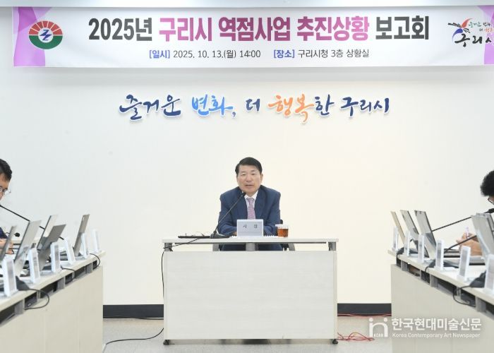 한국현대미술신문 배윤섭 기자 | 구리시는 지난 10월 13일 시청 3층 상황실에서 시정 주요 역점사업의 추진 현황을 점검하기 위한 '역점사업 추진 상황 보고회'를 개최했다.