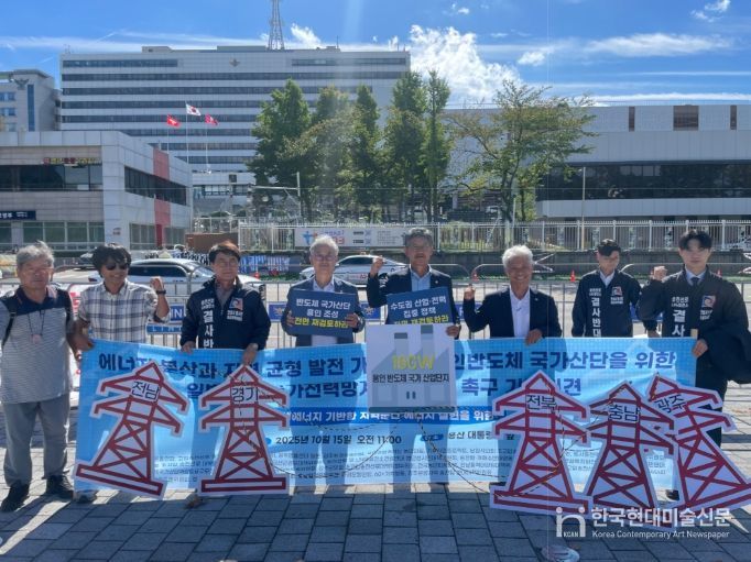 한국현대미술신문 기자 | 전북특별자치도의회 초고압 송전선로 대책 특별위원회는 15일 용산 대통령실 앞과 국회의원회관에서 각각 국가기간전력망 지정 규탄 공동 기자회견 및 이재명정부의 에너지전환과 전력망 새판짜기 정책토론회에 참석했다.