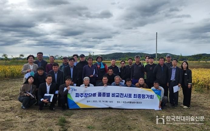 한국현대미술신문 배윤섭 기자 | 파주시는 지난 14일 장단면 거곡리에 위치한 파주시 작물실증시험포장에서 파주장단콩 품종별 비교 전시포 최종 평가회 및 간담회를 개최했다고 밝혔다.