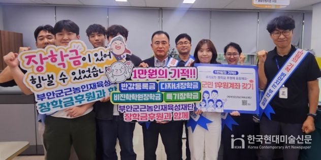 한국현대미술신문 기자 | 부안군 농업정책과는 지난 15일, 부안군근농인재육성재단이 추진 중인 ‘장학금 1군민 1후원계좌 갖기’ 캠페인에 동참했다.