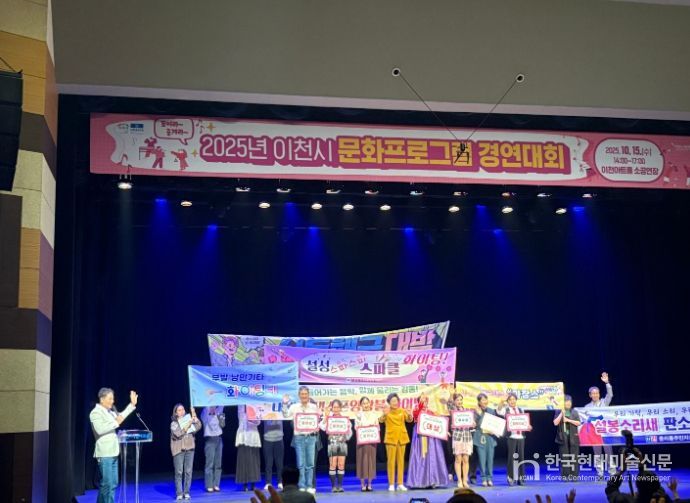 한국현대미술신문 배윤섭 기자 | 이천시는 2025년 10월 15일 이천아트홀 소공연장에서 14개 읍면동 약 450명의 시민과 함께 각 지역의 특색있는 문화와 예술적 역량을 발휘하는 ‘이천시 문화프로그램 경연대회’를 성황리에 마쳤다고 밝혔다.