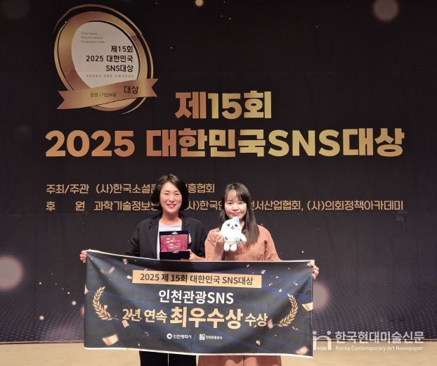 한국현대미술신문 박재남 기자 | 인천광역시와 인천관광공사(사장 백현)는 인천관광 SNS가‘2025 대한민국 SNS 대상’ 공공부문에서 최우수상을 수상하며, 2년 연속 수상의 영예를 안았다고 밝혔다.