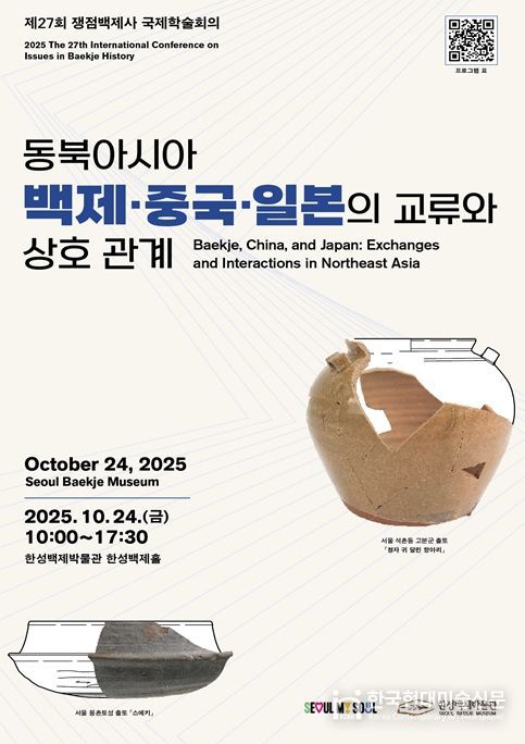 한국현대미술신문 배건 기자 | 서울시 한성백제박물관이 10월 24일 오전 10시부터 한성백제박물관 한성백제홀에서 ‘동북아시아 백제·중국·일본의 교류와 상호 관계’를 주제로 '제27회 쟁점백제사 국제학술회의'를 개최한다.