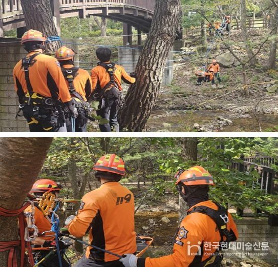 한국현대미술신문 신정은 기자 | 서산소방서은 20일부터 23일까지 소방서 훈련탑과 가야산 용현계곡에서 가을철 산악사고 대비 특별구조훈련을 실시했다.