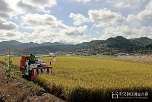 한국현대미술신문 신정은 기자 | 한낮의 햇살이 따뜻하게 느껴지는 완연한 가을에 접어든 23일, 충북 괴산군 문광면 일대 한 논에서 가을장마를 뒤로 하고 바삐 움직이는 콤바인이 영근 벼 수확에 한창이다.